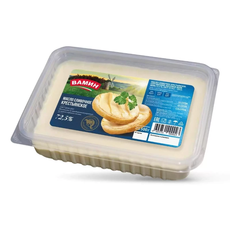Купить Масло Сливочное в/с 72,5% 500гр ВАМИН вы можете в компании МЯСНОЙ ГАСТРОНОМ, оформив заказ в интернет магазине, или